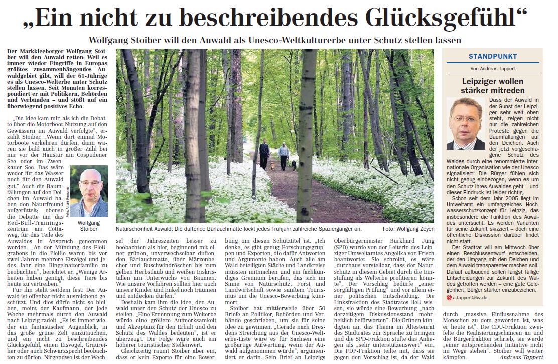 Wolfgang Stoiber will den Auwald als Unesco-Weltkulturerbe unter Schutz stellen lassenArtikel in der Leipziger Volkszeitung vom 07.10.2011, Seite 19.