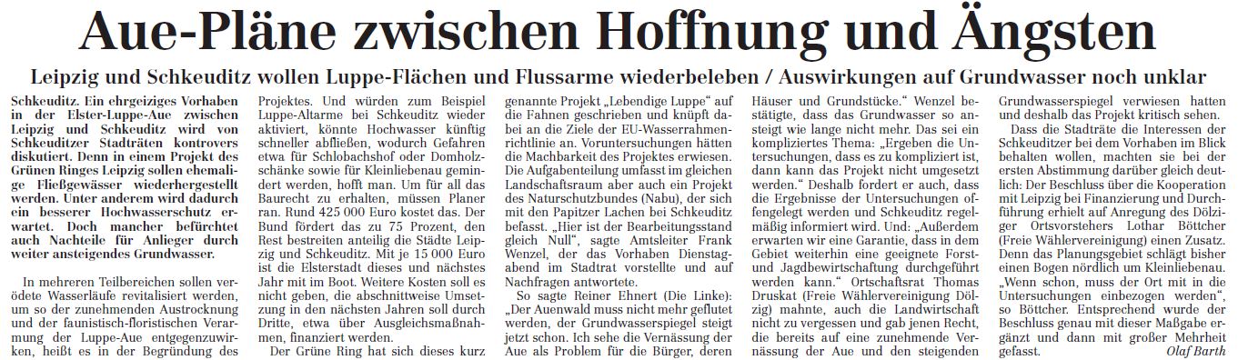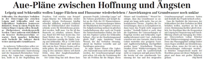 Aue-Pläne zwischen Hoffnung und Ängsten - Leipzig und Schkeuditz wollen Luppe-Flächen und Flussarme wiederbeleben / Auswirkungen auf Grundwasser noch unklar