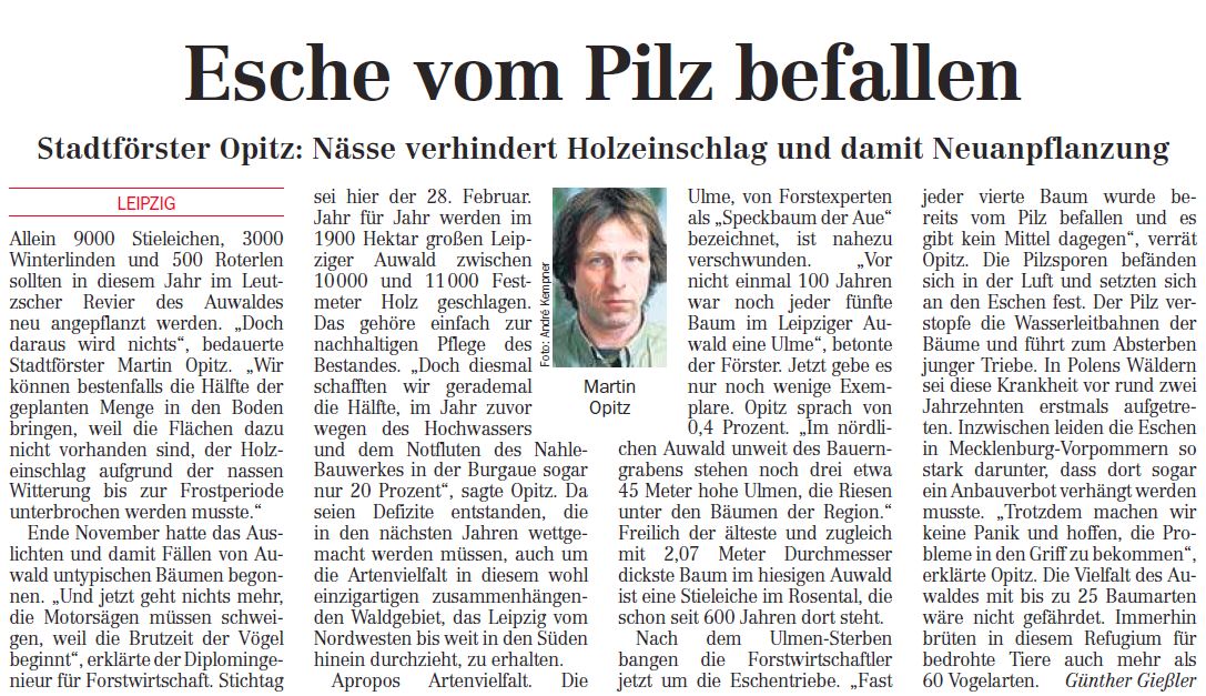 Esche vom Pilz befallen - Stadtförster Opitz: Nässe verhindert Holzeinschlag und damit Neuanpflanzung