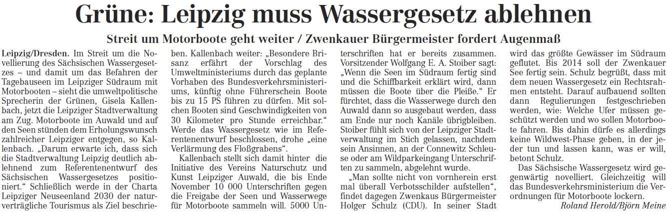 Grüne: Leipzig muss Wassergesetz ablehnen Streit um Motorboote geht weiter / Zwenkauer Bürgermeister fordert Augenmaß