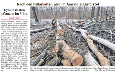 Nach den Fällarbeiten wird im Auwald aufgeforstet - Gymnasiasten pflanzen im März