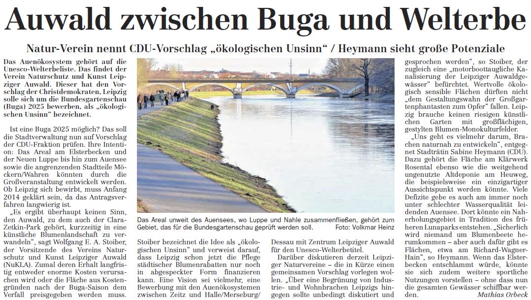 Auwald zwischen Buga und Welterbe - Natur-Verein nennt CDU-Vorschlag „ökologischen Unsinn“ / Heymann sieht große Potenziale