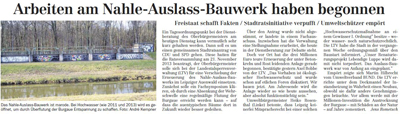 Arbeiten am Nahle-Auslass-Bauwerk haben begonnen - Freistaat schafft Fakten / Stadtratsinitiative verpufft / Umweltschützer empört