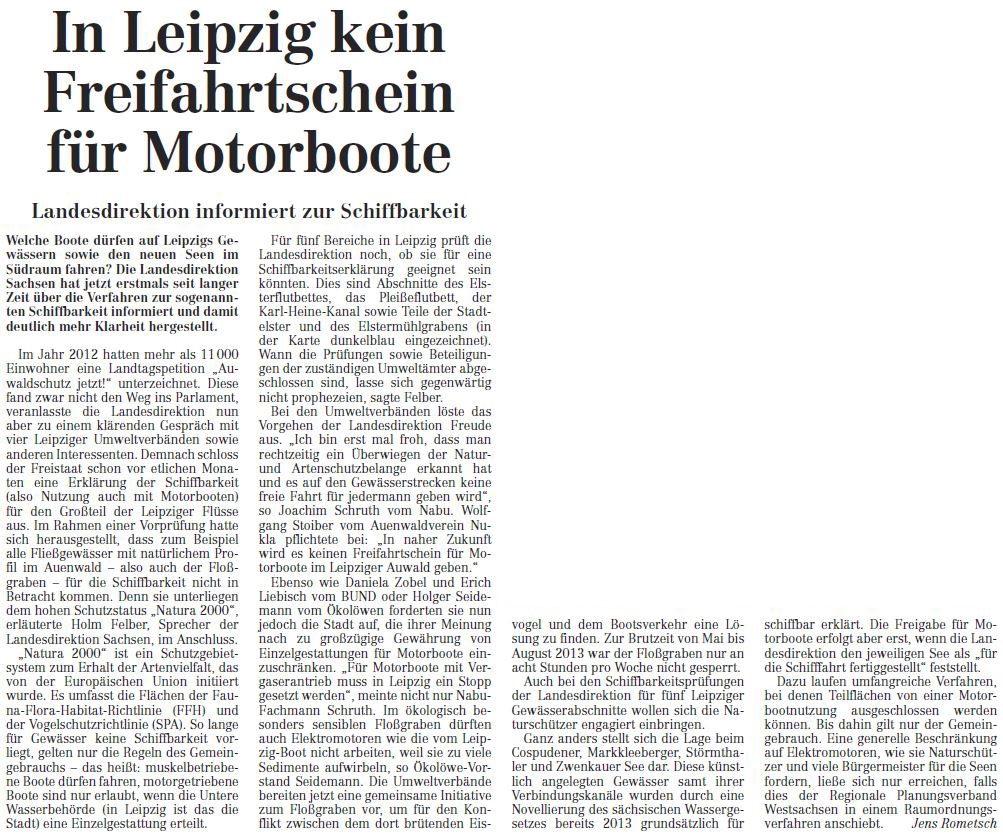 Artikel in der Leipziger Volkszeitung vom 10.03.2014, Seite 14.