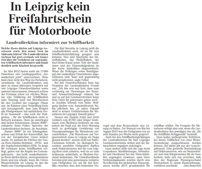 In Leipzig kein Freifahrtschein für Motorboote - Landesdirektion informiert zur Schiffbarkeit