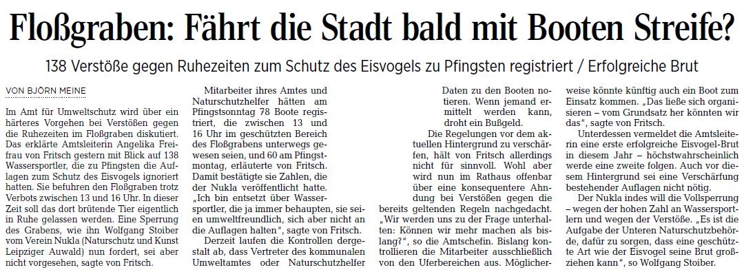 Floßgraben: Fährt die Stadt bald mit Booten Streife? - 138 Verstöße gegen Ruhezeiten zum Schutz des Eisvogels zu Pfingsten registriert / Erfolgreiche brut