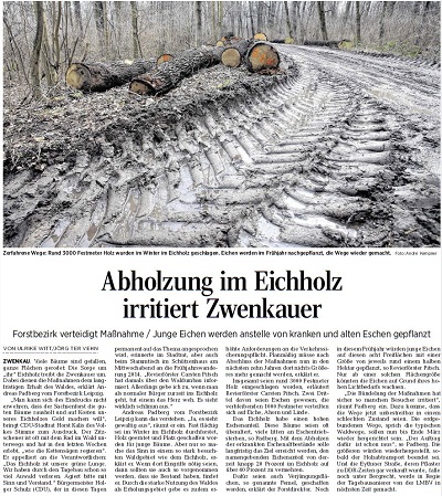 Abholzung im Eichholz irritiert Zwenkauer - Forstbezirk verteidigt Maßnahme / Junge Eichen werden anstelle von kranken und alten Eschen gepflanzt