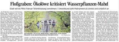 Floßgraben: Ökolöwe kritisiert Wasserpflanzen-Mahd - Stadt will bis Mitte Februar Teilentkrautung vornehmen / Umweltbund sieht Maßnahmen als sinnlos und schädlich an