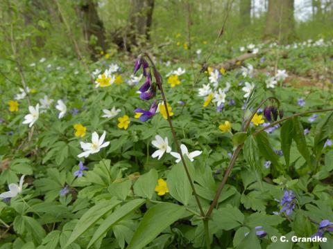 Sein schönstes Bild zeigt die pflanzliche Vielfalt von März bis April, wenn ein Meer von farbenfrohen Frühjahrsblühern die Krautschicht des Leipziger Auwaldes dominiert. Mit dem Blattaustrieb der Bäume und der größeren Beschattung verschwindet dieser bunte Frühlingsaspekt, und im Sommer herrschen weniger farbenfrohe Stauden und Gräser vor (Sommersapekt).